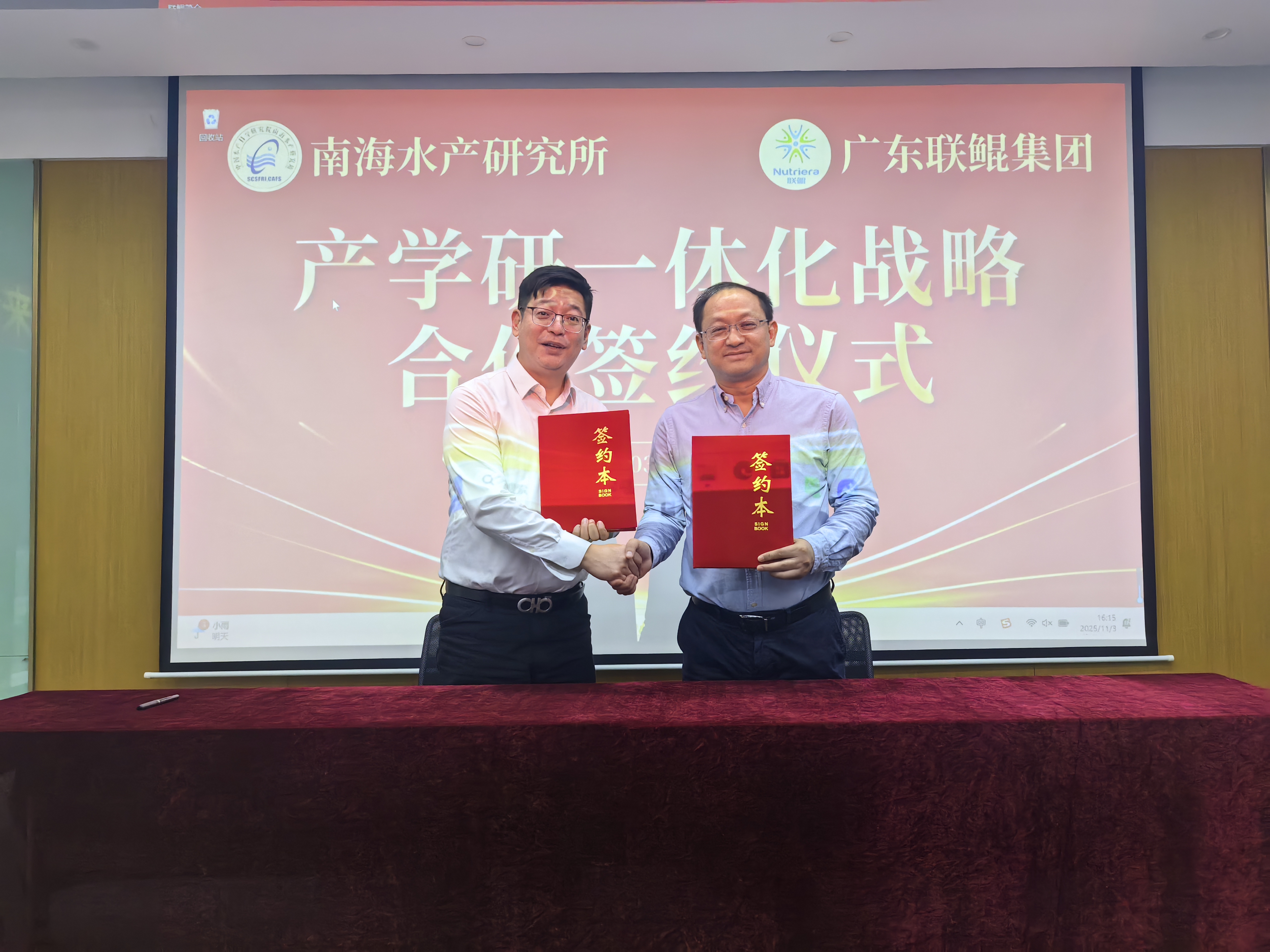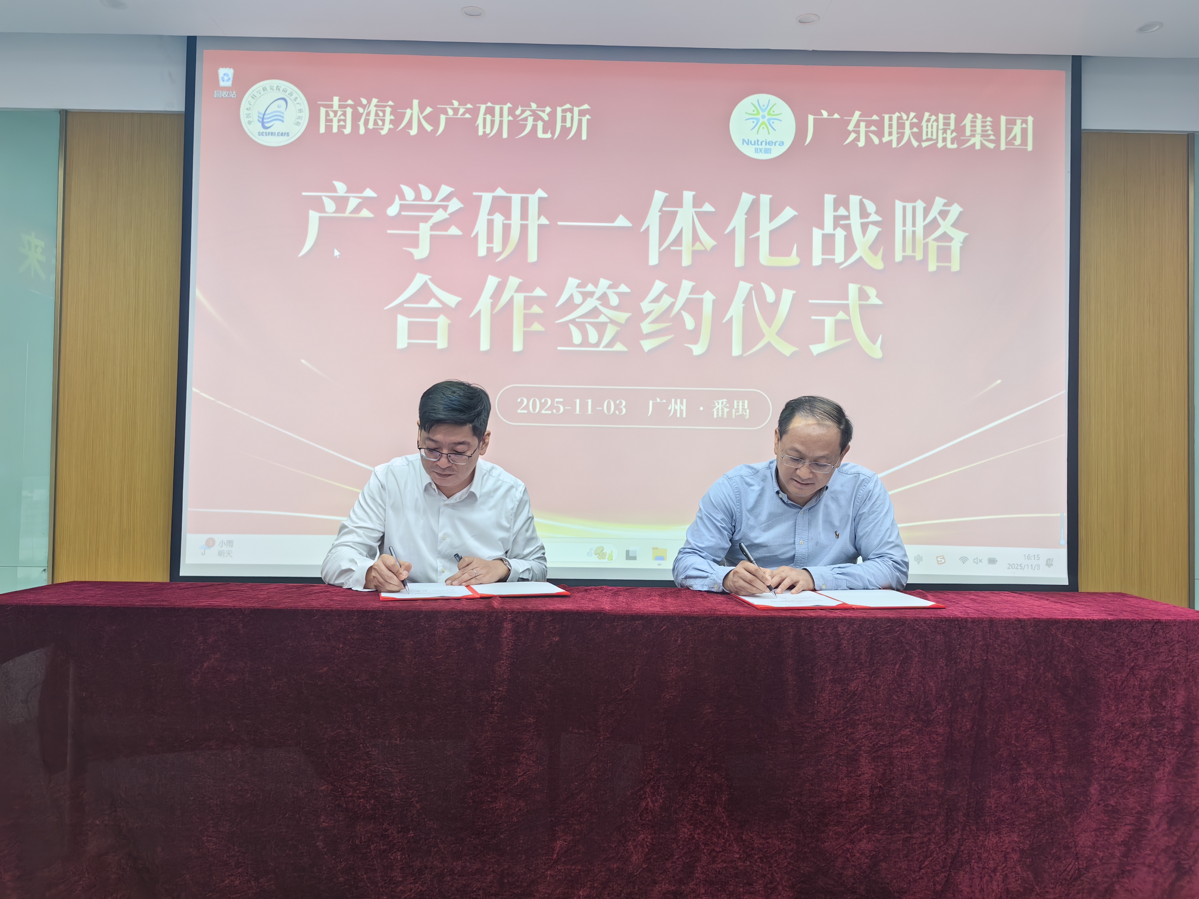 11月3日,中国水产科学研究院南海水产研究所(下称“南海水产研究所”)副所长马振华研究员、周传朋副研究员一行前来联鲲集团考察交流,并参加南海水产研究所与联鲲集团产学研一体化战略合作签约仪式。联鲲集团总裁杨勇博士带领公司技术和管理人员参与了本次活动。